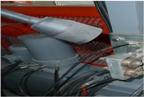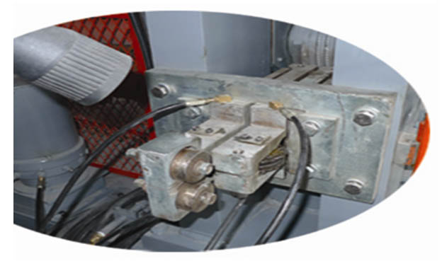 注:本設(shè)備采用用紅外線非接觸式測(cè)溫方式,光纖傳導(dǎo),抗干擾能力強(qiáng),數(shù)字顯示溫度。 (6)加熱柜(見(jiàn)上總圖) 此套設(shè)備運(yùn)行的成本是電費(fèi),鋼筋加熱設(shè)備好壞直接體現(xiàn)在耗電指數(shù)上,采用高性能中頻加熱設(shè)備,可節(jié)約20—50度/噸電費(fèi),要求采用高性能RGBT模塊,電轉(zhuǎn)換效率高,加熱設(shè)備運(yùn)行安全、可靠,綠色、環(huán)保。 (7)剪斷 剪斷采用我廠自主開(kāi)發(fā)的飛剪,經(jīng)過(guò)十多年的優(yōu)化、技術(shù)非常成熟,具有行業(yè)領(lǐng)跑水平,剪切動(dòng)力小、反應(yīng)快,故障率低,免維護(hù),進(jìn)口伺服電機(jī),穩(wěn)定可靠。操作控制采用液晶觸摸屏顯示控制+PLC,長(zhǎng)度便于修改,具有行業(yè)領(lǐng)先水平,見(jiàn)圖片: (8)冷床: 冷床是保證鋼筋質(zhì)量的的重要設(shè)備之一,特別是生產(chǎn)10毫米以上的鋼筋,鋼筋直徑粗、散熱比較慢、傳統(tǒng)做法是鋼筋加熱切斷后落到料槽內(nèi)打捆放在一邊冷卻,外面的鋼筋下面的鋼筋先冷卻,捆中心鋼筋冷卻速度非常緩慢,捆心部鋼筋過(guò)度回火,導(dǎo)致一捆鋼筋內(nèi)外質(zhì)量不一致,會(huì)有少量鋼筋不合格。 我公司建議:生產(chǎn)10毫米以上的鋼筋最好配冷床,確保鋼筋質(zhì)量。