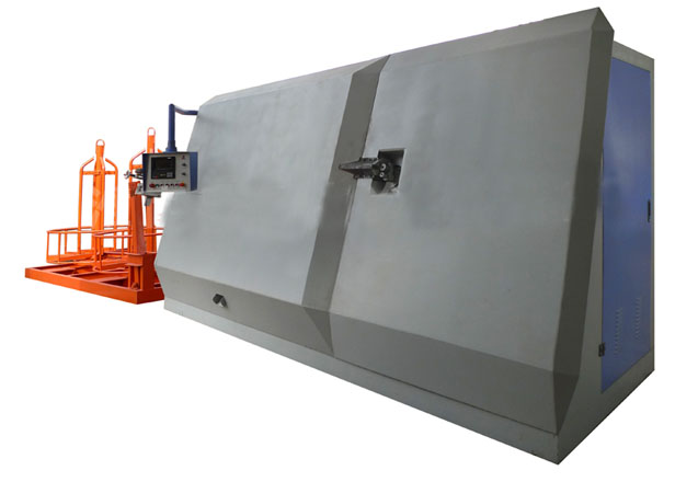 ●數(shù)控彎箍機-特點五:操作臺:為減少操作臺占用空間對周圍的影響、控制電纜在地面上不安全性。新機型把操作面板設計在主機上,可以左右推移。
